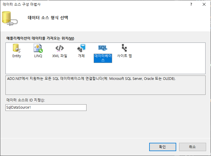 3. 데이터 소스 구성 - 데이터베이스가 설치되어 있어야 합니다.