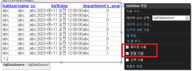 Visual Studio 2022버전으로 GridView 컨트롤을 추가하면, 무슨 이유인지 자동 서식 기능이 나타나기도 하고 나타나지 않은 컴퓨터도 있습니다.