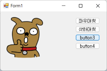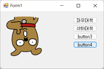 다음 코드는 버튼을 클릭하면 이미지를 좌우 또는 상하로 대칭시키고, 픽처박스에 이미지를 출력하는 C#코드 입니다.