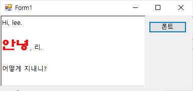 2. 폼에 RitchTextBox 1개, 버튼 1개를 배치합니다.