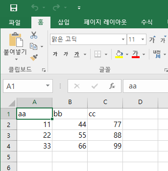 파일 내용은 데이터베이스에서 가져와서 생성하는 것이 일반적이나 여기에서는 CSV 파일을 생성하는 방법과 다운로드 하고 엑셀로 여는 예를 보입 것입니다.
