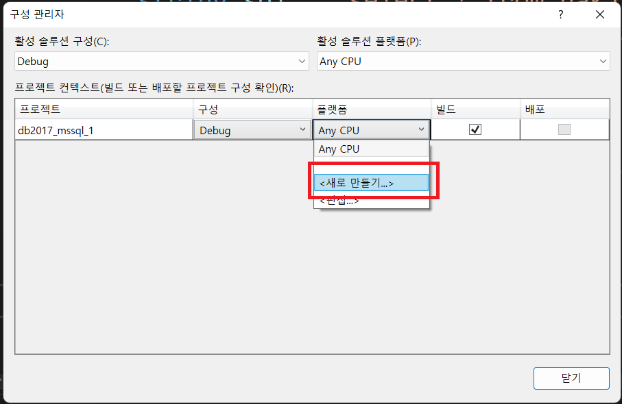 플랫폼에서 "x64"를 선택합니다.