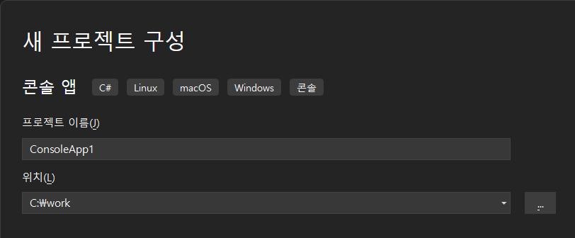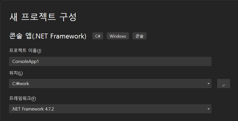 콘솔 앱(.NET Framework) 프로젝트 생성