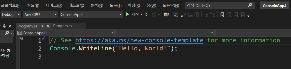 "콘솔 앱" - 최상위 문 사용 안 함
