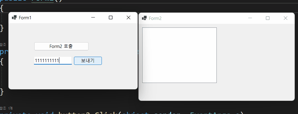 매개변수로 this(현재 Form1)을 넘겨줍니다. 아마 new Form2에 오류가 표시될 것입니다.