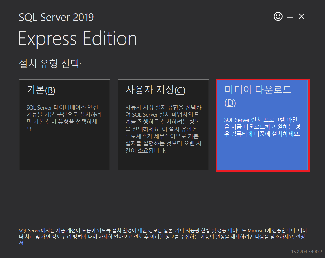 3. 다운로드 받은 파일을 실행합니다 - SQL2019-SSEI-Expr.exe