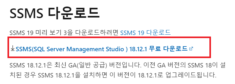 최신 버전의 SSMS(SQL Server Management Studio)를 다운로드합니다.