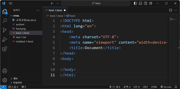 화면의 우측 하단에 “Go Live”가 나타나는 것을 볼 수 있습니다 – Live Server가 실행되고 있습니다.