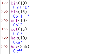 | 정수 x를 '0b' 접두어(prefix)가 붙은 2진수의 문자열을 반환합니다. |