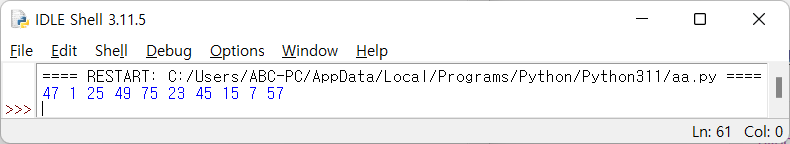 다음 코드는 1부터 100까지의 홀수 중에서 난수를 10개 생성합니다.