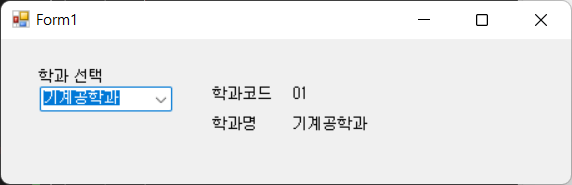 콤보박스를 선택하면 학과코드와 학과명을 각각 출력합니다.