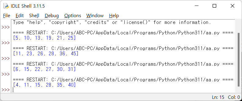 lotto.sort() # 크기 순 정렬
