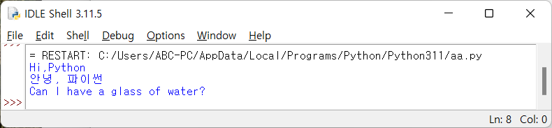 | readline() | 파일에서 한 행을 읽는다. 문자열(str)로 반환한다. |