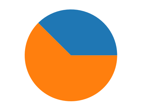 다음 코드는 2개의 데이터를 가진 간단한 파이 차트의 그래프를 그린 예입니다.