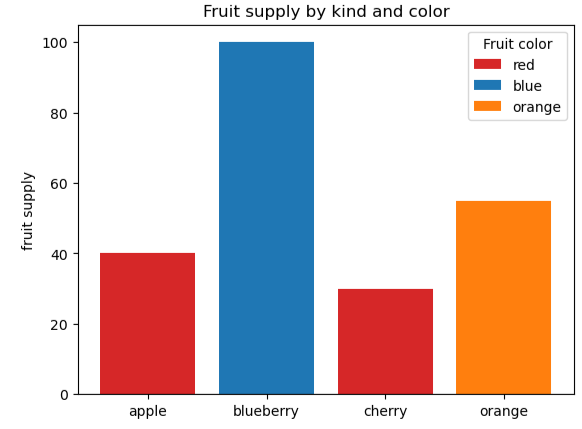 ax.bar(fruits, counts, label=bar_labels, color=bar_colors)