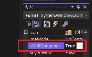 C# 언어에서는 폼을 추가할 때 "MDI 부모 양식"을 선택하거나 일반 폼의 IsMdiContainet 속성을 "true"로 변경해서 MDI 폼을 만들 수 있습니다.