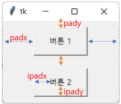 3. padx, ipadx, pady, ipady 속성으로 크기 조절하기
