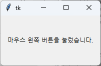 label.configure(text='마우스 왼쪽 버튼을 눌렀습니다.')