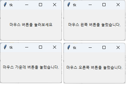 label.configure(text='마우스 가운데 버튼을 눌렀습니다.')