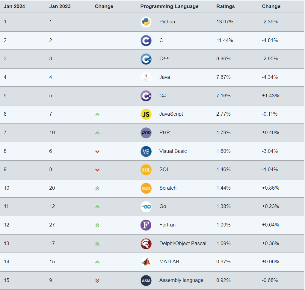 | 티오베 인덱스, 2024년 2월 프로그래밍 언어 순위 TIOBE Index (0) | 2024.02.11 |