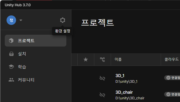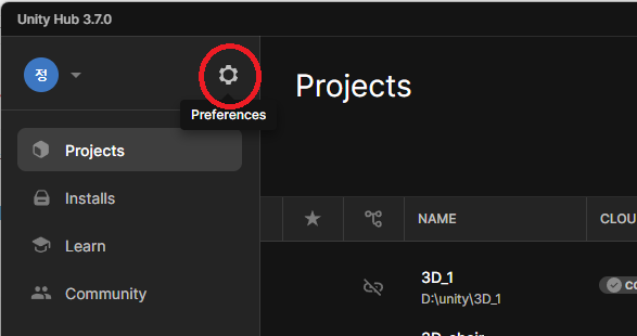 유니티 허브의 메뉴를 한글로 (영어로) 바꾸는 방법