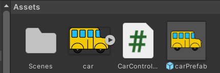 프리팹은 자동차가 앞으로 이동하는 간단한 기능으로 구현합니다.