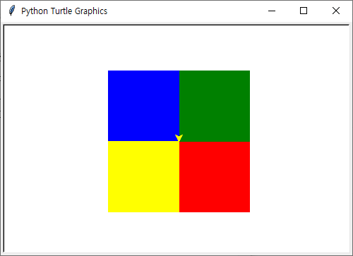 사각형 4개를 그리고 지정한 색으로 채우는 파이썬 코드입니다.