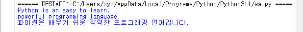 파이썬은 배우기 쉬운 강력한 프로그래밍 언어입니다."""