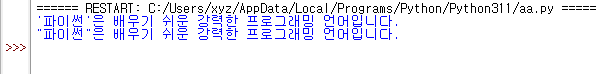 | ... 프로그램을 작성하는 방법, IDLE Shell Edit https://coding-abc.tistory.com/306 >> 문자열 출력하기 이스케이프 시퀀스 Escape Sequence ... |