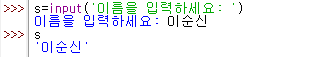 input('prompt') 형식은 프롬프트를 화면에 출력에 출력한 후에 값을 입력 받습니다.