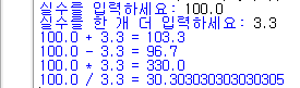 아래의 코드는 실수를 2개 입력받아서 사칙연산을 하는 코드입니다.