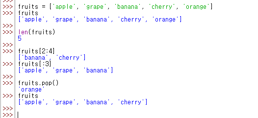 fruits[1:] # 덱스 1부터 끝까지