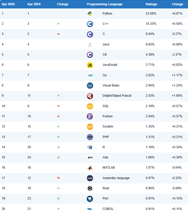 | 2025년 6월 프로그래밍 언어 인기 순위, TIOBE (4) | 2025.06.12 |