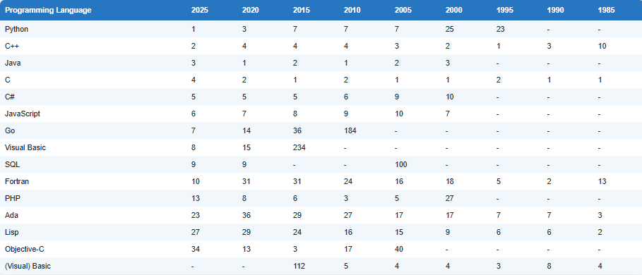 | 2025년 2월 프로그래밍 언어 순위, TIOBE INDEX (0) | 2025.03.01 |
