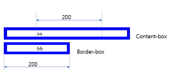 | .div2 | border-box | 200px 전체 안에 padding+border 포함 | 200px |