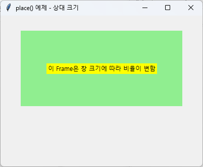 label = tk.Label(frame, text="이 Frame은 창 크기에 따라 비율이 변함", bg="yellow")