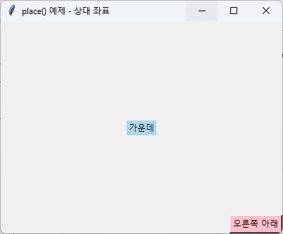 root.title("place() 예제 - 상대 좌표")