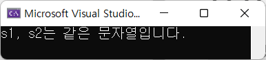 Console.WriteLine("s1, s2는 같은 문자열입니다.");