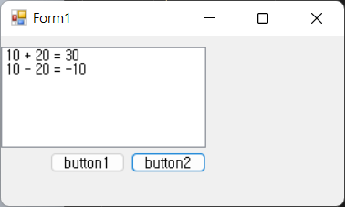listBox1.Items.Add(String.Format($"{a} - {b} = {a - b}"));