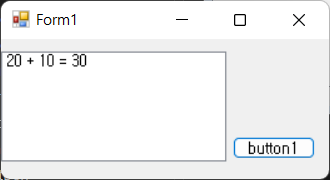listBox1.Items.Add(String.Format($"{a} + {b} = {a + b}"));