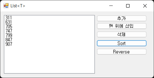 | Reverse() | 순서를 반대로 바꿉니다. |