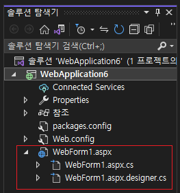 7. "WebForm1.aspx"를 선택합니다.