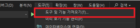 [도구] 메뉴에서 "도구 및 기능 가져오기"를 선택합니다.