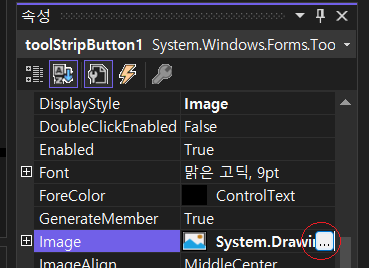 3. 버튼에 들어가 이미지는 버튼의 속성창에서 "Image" 속성을 이용해서 설정합니다.