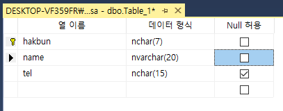 그림처럼 테이터베이스를 확장해서 "새로 만들기" --> "테이블..."을 선택합니다.