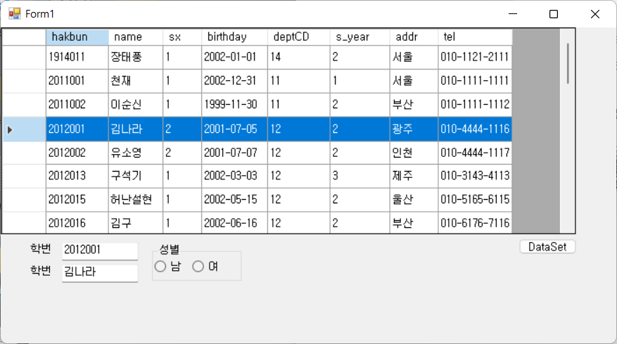 C#에서 오라클 데이터베이스에 연결해서 데이블의 데이터를 출력해 보겠습니다. 오라클 데이터베이스에 연결하는 여러가지 방법이 있습니다. 여기서는 nuget 패키지 관리를 이용해 보겠습니다. 1. 프로젝트를 생성합니다. - WIndows Forms 앱(.NET Framework 4.8) 2. 폼에 ListBox 1개, DataGridView 1개, 버튼 2개를 배치합니다 - 아래의 결과 화면을 참고합니다. 3. 솔루션 탐색기에서 "NuGet 패키지 관리"를 선택합니다. [찾아보기]에서 "Oracle"를 입력합니다. 아래의 체크한 항목을 선택합니다. 이미 설치되어 있는지 [설치됨]에서 먼저 검색을 해 봅니다 - 설치되어 있으면 이 과정을 건너 뜁니다. 4. 참조에 추가된 것을 확인합니다. "Oracle.Dat..