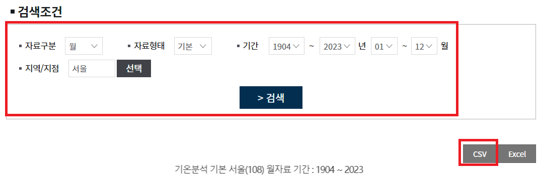 파이썬의 matplotlib 라이브러리를 이용하여 기후 데이터의 기온 변환를 그래프로 표현해 봅니다. 1. 기후 데이터 받기 기온 데이터는 "기상청 기상자료개방포털" 사이트에서 기온 변화의 데이터를 다운로드 받을 수 있습니다. 1904년부터 현재까지의 기온 데이터가 저장되어 있습니다. https://data.kma.go.kr/stcs/grnd/grndTaList.do?pgmNo=70 기상자료개방포털[기후통계분석:통계분석:기온분석] 중부(26) 서울경기: 서울(108), 인천(112), 수원(119), 강화(201), 양평(202), 이천(203) 강원영동: 속초(90), 강릉(105), 태백(216) 강원영서: 철원(95), 대관령(100), 춘천(101), 원주(114), 인제(211), 홍천(212)..