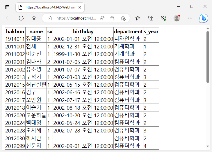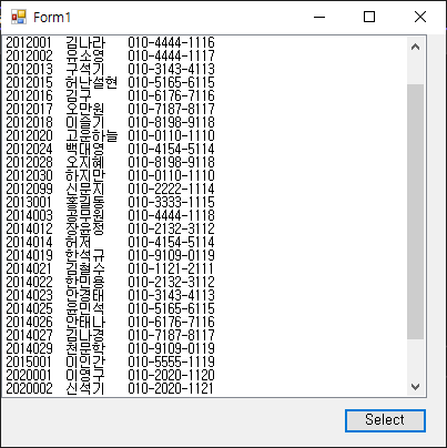 (C#) 데이터베이스에서 학번을 조회(select)하는 예제
