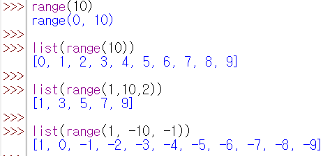 (파이썬) 내장함수 range() 반복 가능한 개체