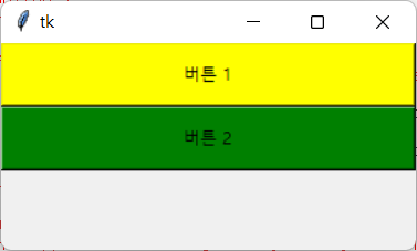 파이썬에서 버튼 위젯의 크기를 조절하는 방법입니다. 1. 기본적인 버튼의 크기는 버튼의 text 속성에 있는 텍스트의 크기로 설정됩니다. from tkinter import * win = Tk() button1 = Button(win, text='버튼 1') button2 = Button(win, text='버튼 2') button1.place(x=50, y=50) button2.place(x=120, y=50) mainloop() 2. 버튼.place() 함수의 width, height 속성으로 크기 조절하기 from tkinter import * win = Tk() button1 = Button(win, text='버튼 1') button2 = Button(win, text='버튼 2') button..